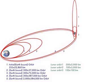 "The liquid apogee motor on board the spacecraft was fired for about 805 seconds to put Chandrayaan-1 into an elliptical orbit with 7,500 km apolune (farthest from moon) and 500 km perilune (nearest to moon)," ISRO director S. Satish said.