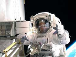 The operation was marked by a small glitch, however, as the unfurling process was held up with one of the 30 solar panels stuck to another panel. The astronauts decided to wait about 30 minutes to allow the Sun's rays to warm the panels and allow them to be pulled apart.