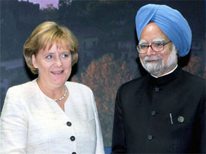 | File Photo: Indian PM Manmohan Singh and Chancellor Angela Merkel at the G-8 summit, 9 July 2009 |