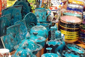 The flowers set the tone for our encounters with the city of Istanbul and as we travelled down the Aegean coast, with the ruins, the people and the beaches that we went to. The streets were lit up with men dressed in purple (without seeming in any way out of place as they might elsewhere) while in another place, at another time a purple headscarf drew us in. And the Grand Bazaar, with its trademark blue pottery and the red and black engravings of flowers, leaves and dervishes on plates and bowls reinforced the city’s bold colours.